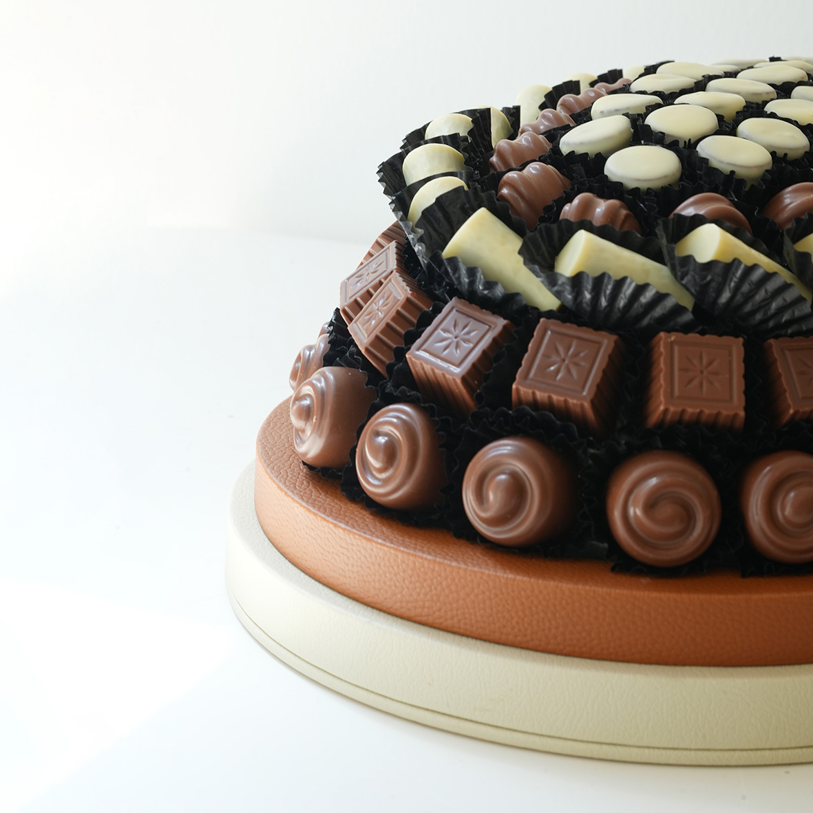 Discover our luxurious 1.1kg ovel Chocolate leather Tray, beautifully arranged with a variety of assorted chocolate flavors. Each piece is crafted for rich taste and exquisite presentation, perfect for gifting or treating yourself. Elegant, round-shaped, and irresistibly delicious —every bite is a celebration of chocolate bliss.